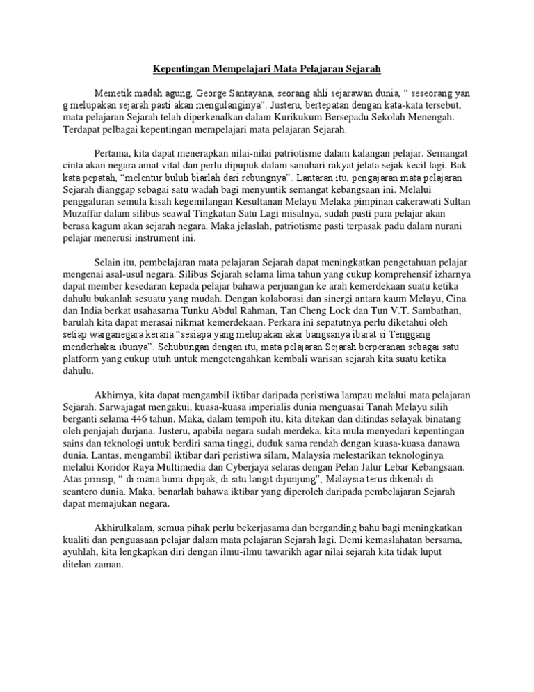 Kepentingan Mempelajari Mata Pelajaran Sejarah Dalam Kalangan Generasi Muda Pdf